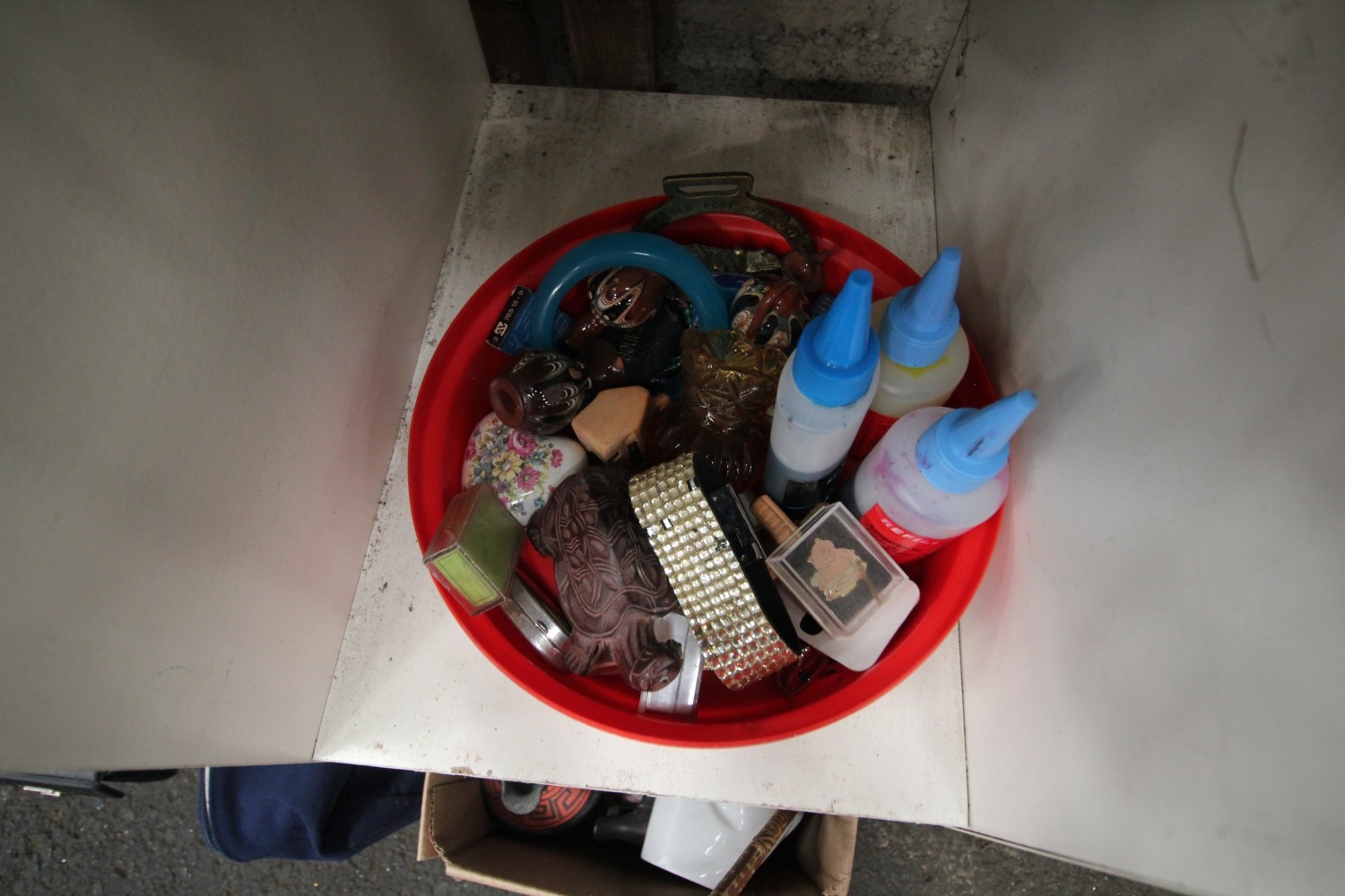 pot inc horse brass seletion of small collectibles inc pin badges trinket pots ect