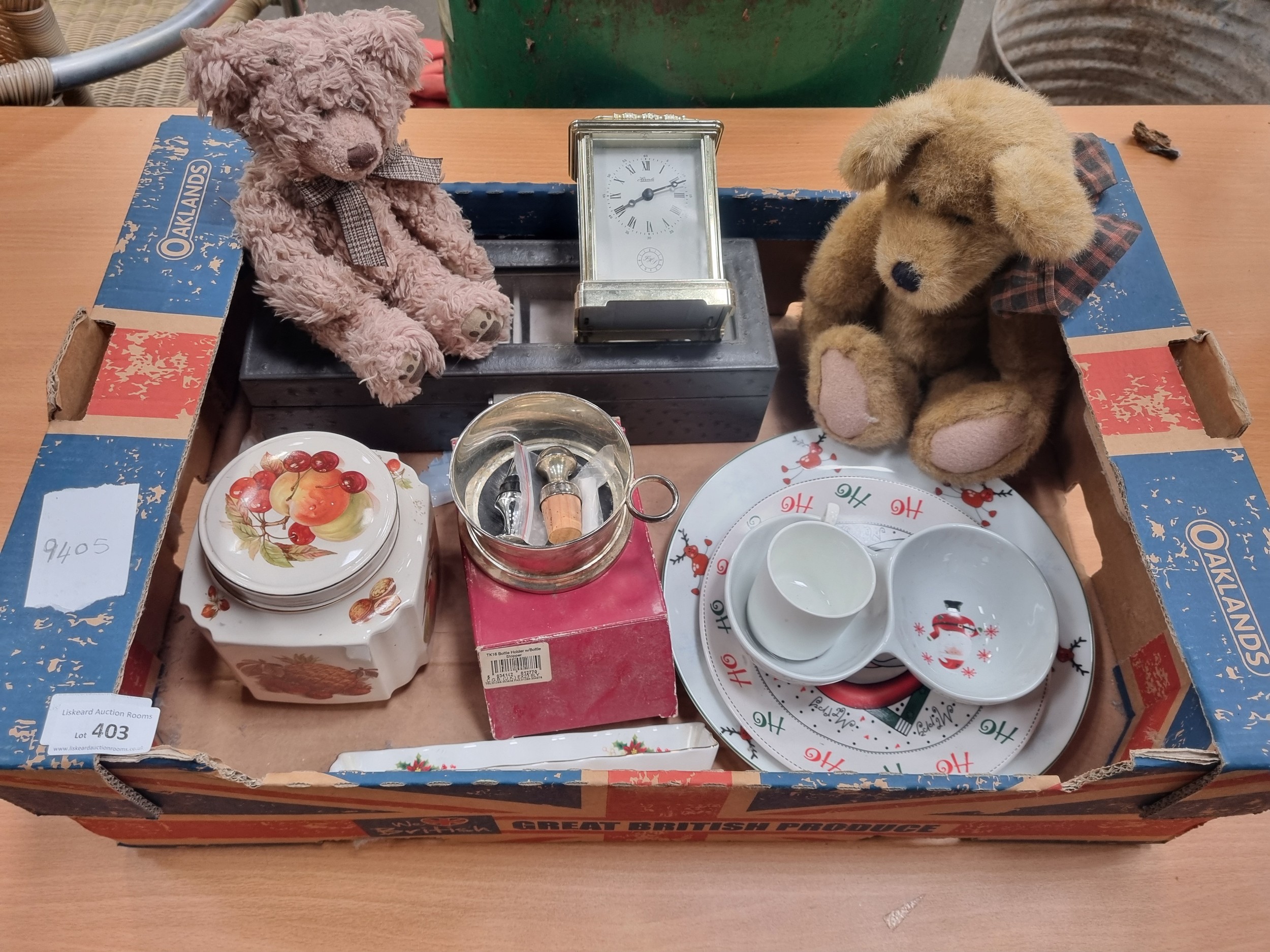 selection of items inc boyds collection weighted bear and a saddler cereamic jar, vintage bottle holder with wine stopper and more