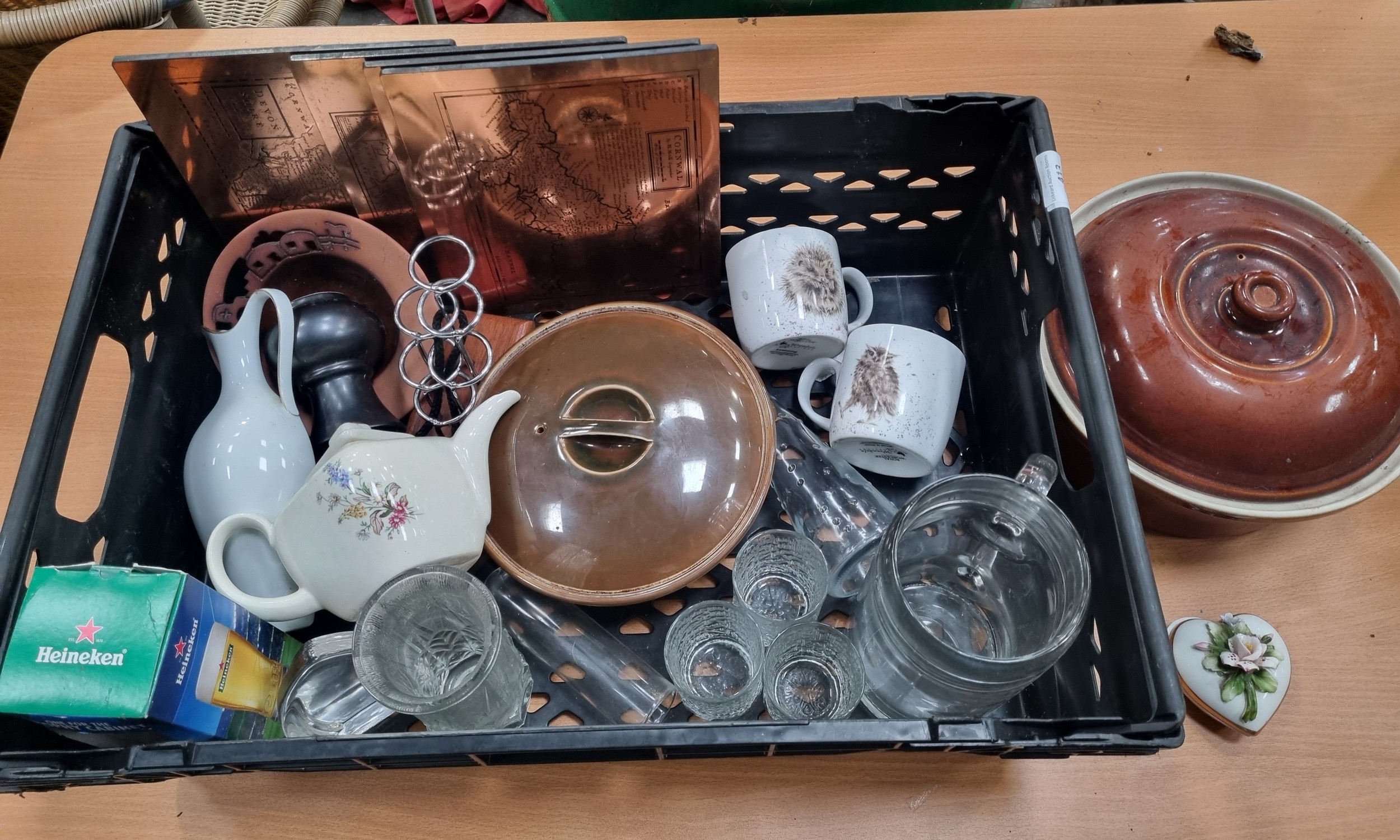 selection of household items inc royal worcester lidded casserole dish, selection of royal worcester mugs, Capodimonte trinket dish and more
