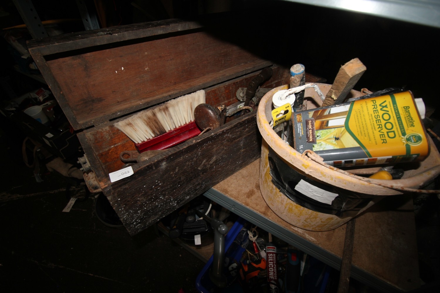 Lot 43: Vintage wooden dovetailed tool box and contents inc....