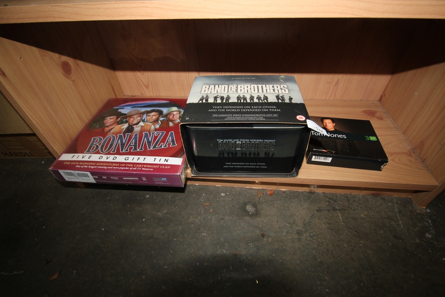 selection of items such as band of brothers dvd set, tom jones and bonanza five dvd gift tin