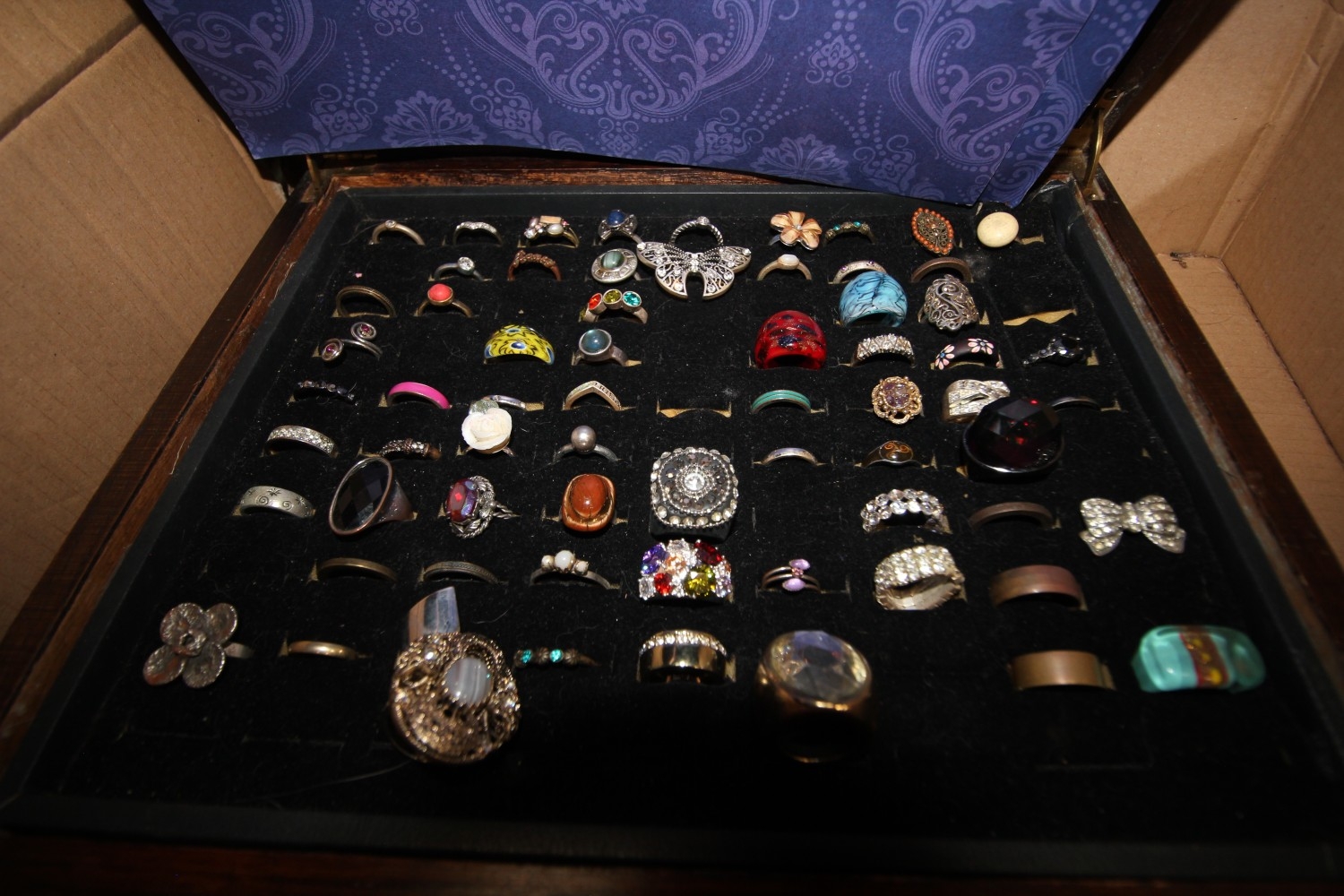 vintage jewellery wardrobe with multiple compartments plus wooden storage ring box with a large qty of rings