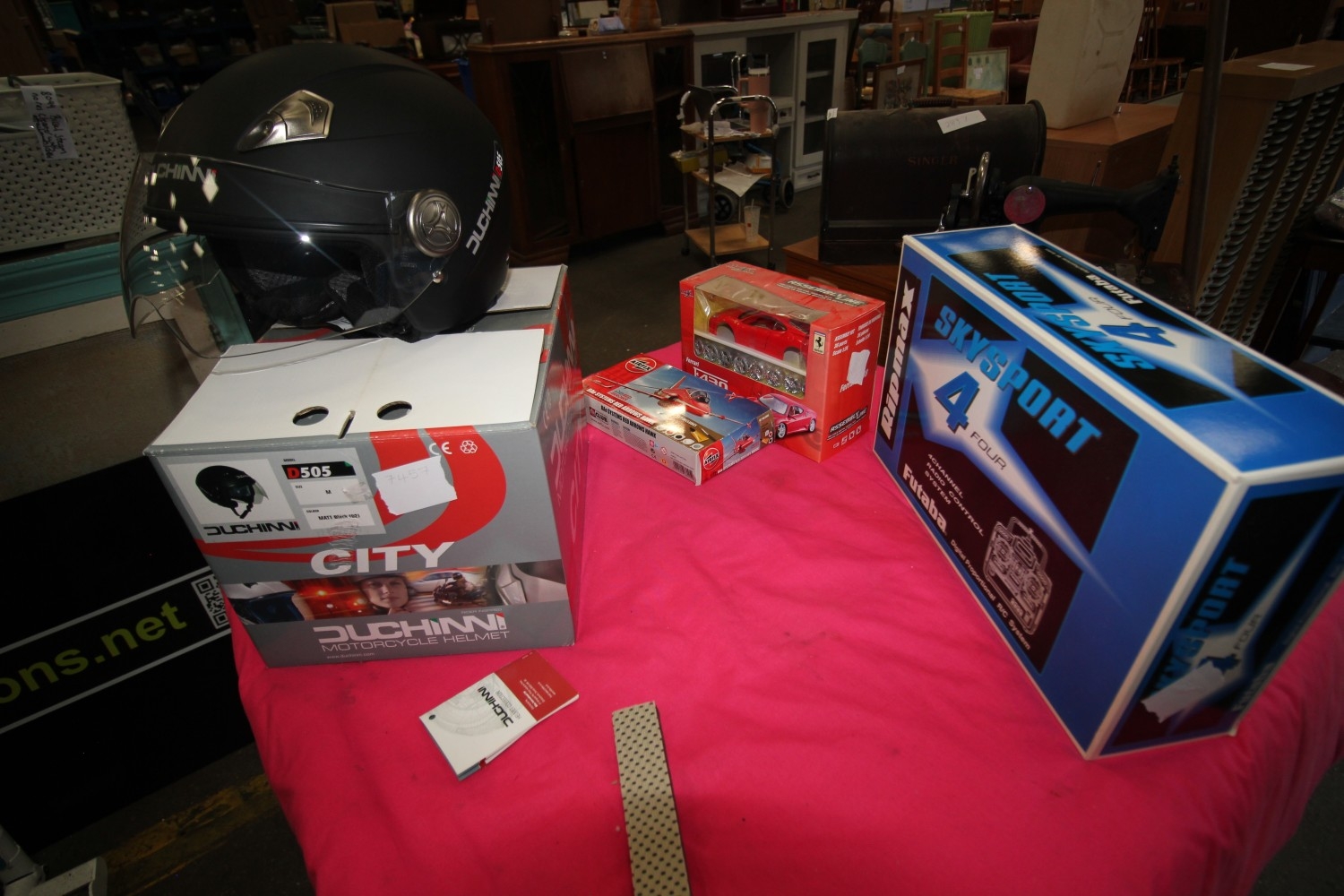 red arrows hawk painting set, skysport 4 radio control system, build your own ferrari model kit plus motorcycle helmet in box