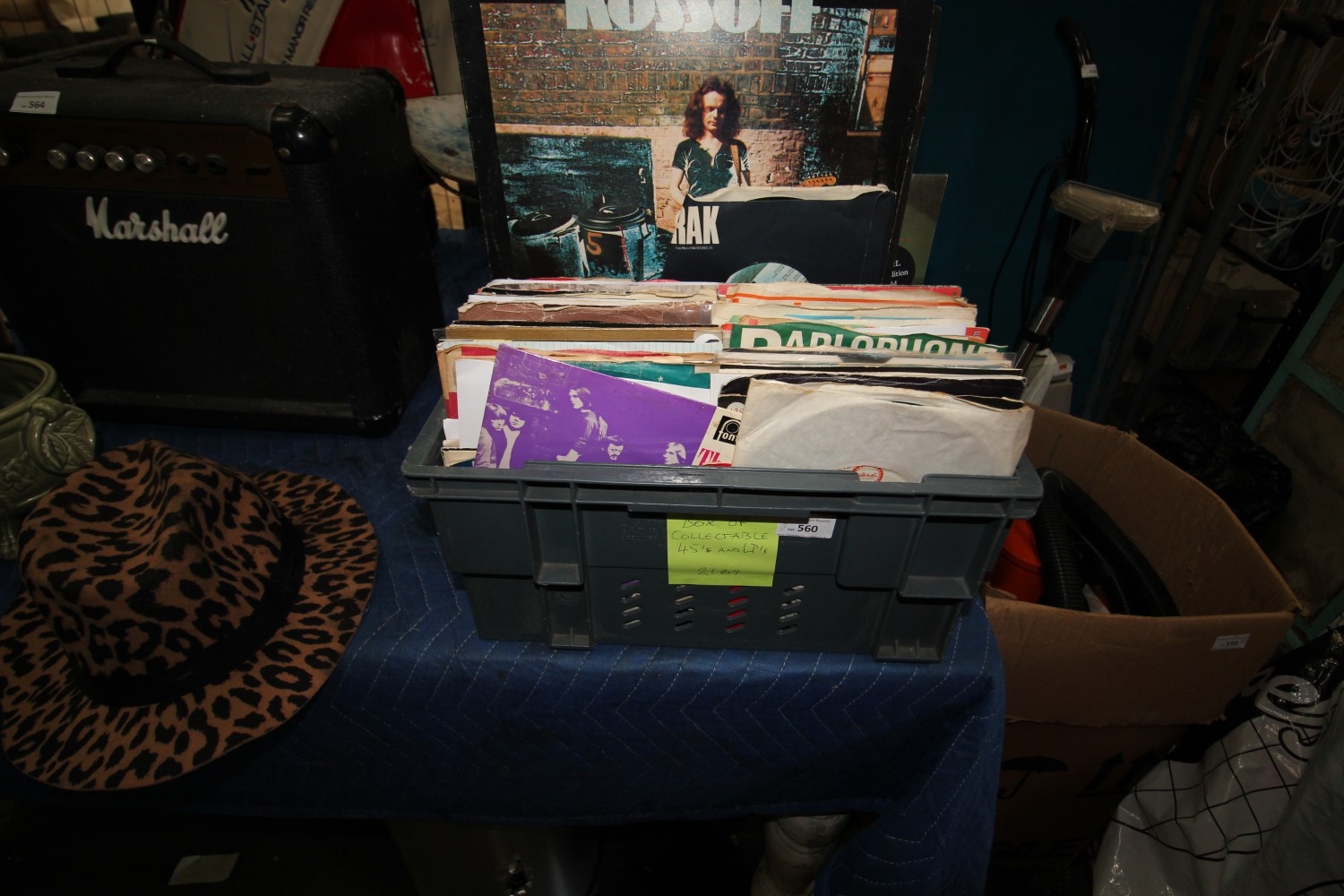 Lot 560: box of collectable 45s and LPs inc kossoff,...