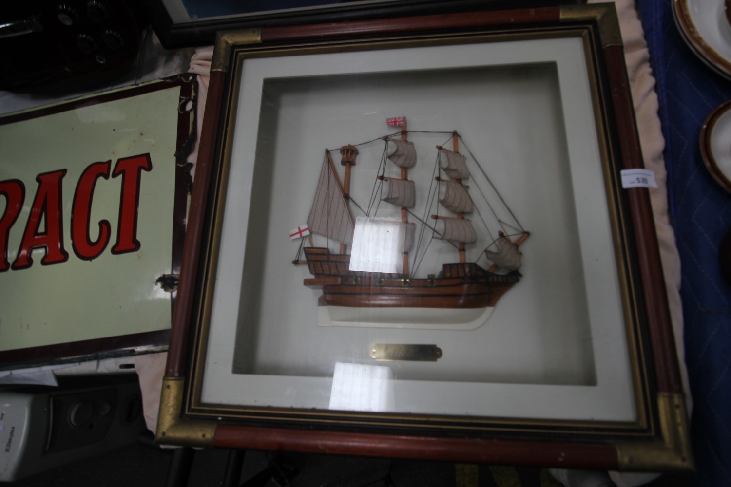 Lot 570: Framed vintage model of The Golden Hind with...