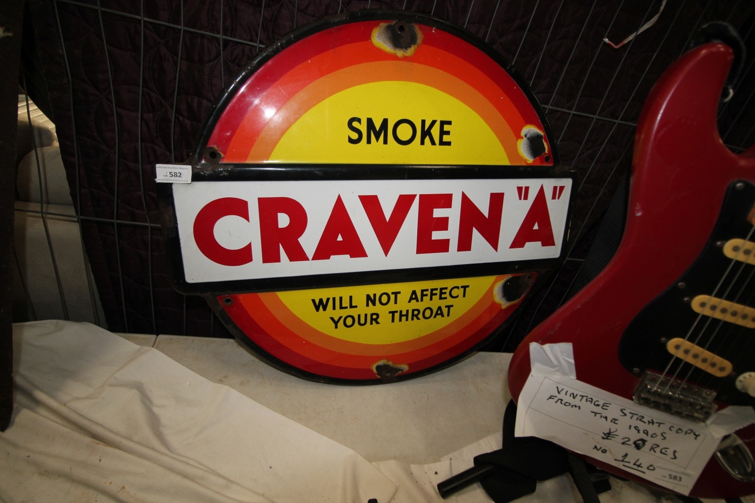 Lot 582: vintage enamel smoke Craven A sign measuring 24"...