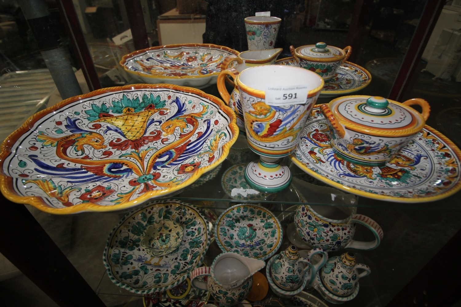 Lot 591: collection of Italian deruta ceramics with the traditional...
