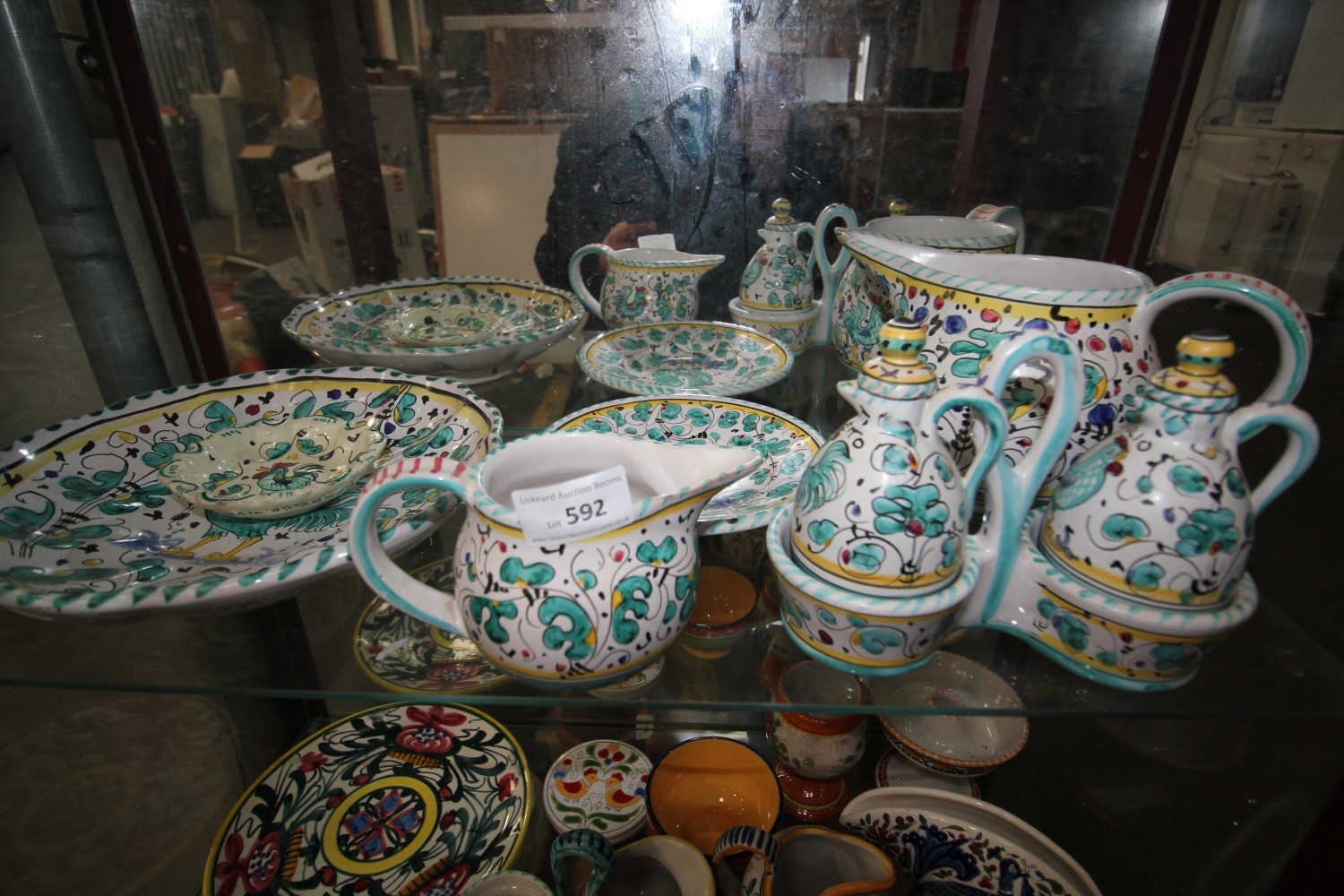 Lot 592: collection of Italian deruta ceramics - green rooster...