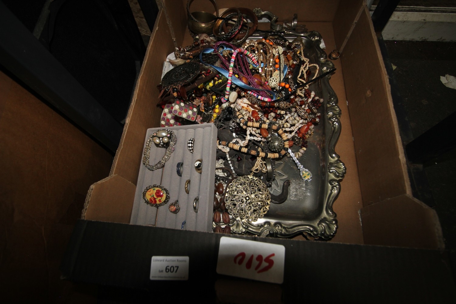 Lot 607: large box of assorted jewellery inc ring box