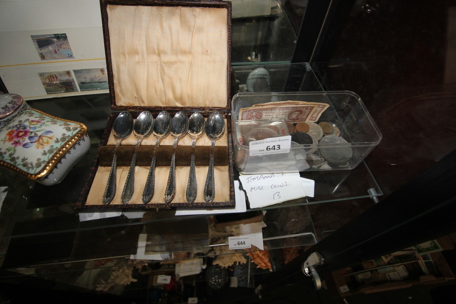 Lot 643: a selection of tea pots and misc coins...