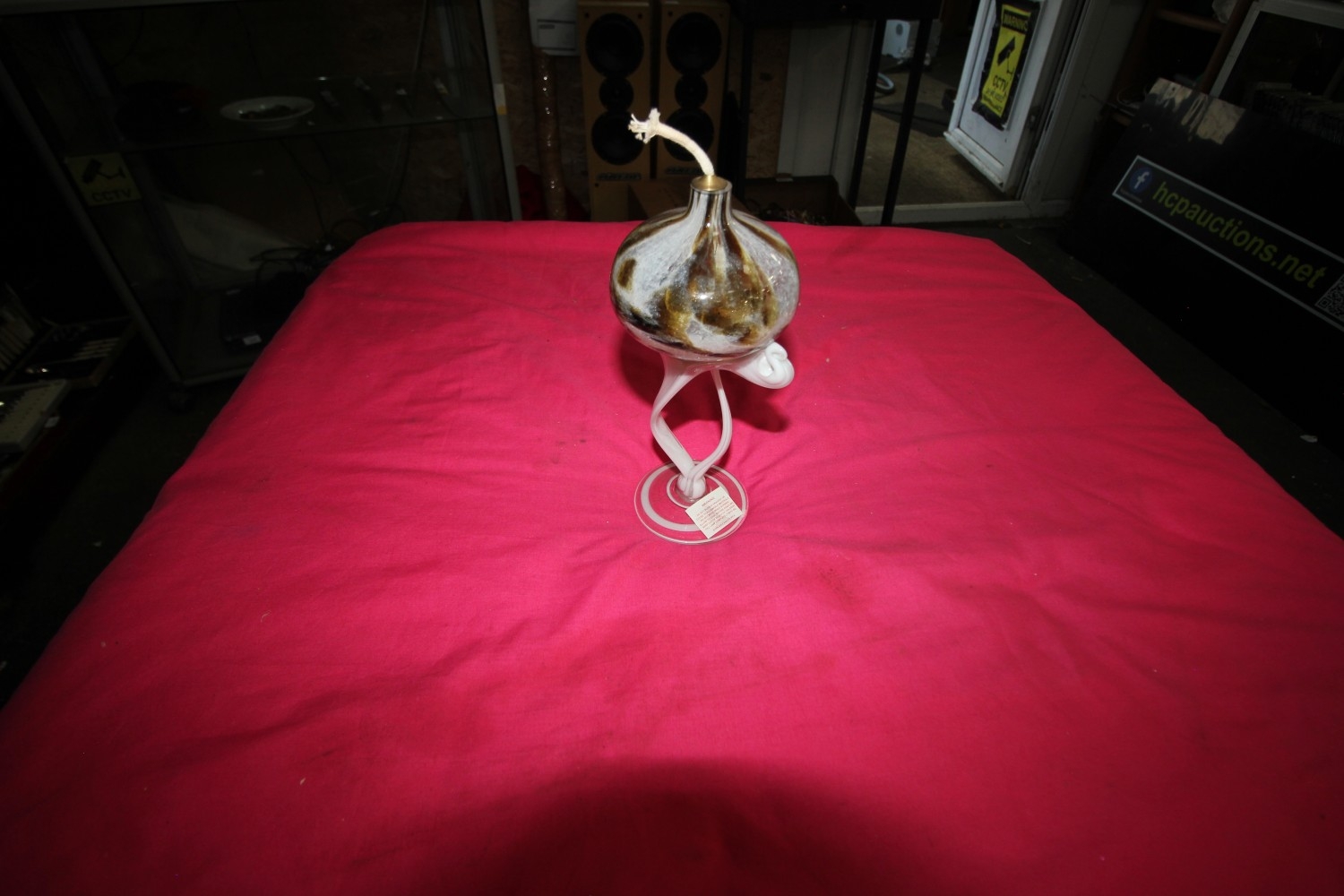 Lot 656: vintage studio art glass iridescent pedestal oil lamp...