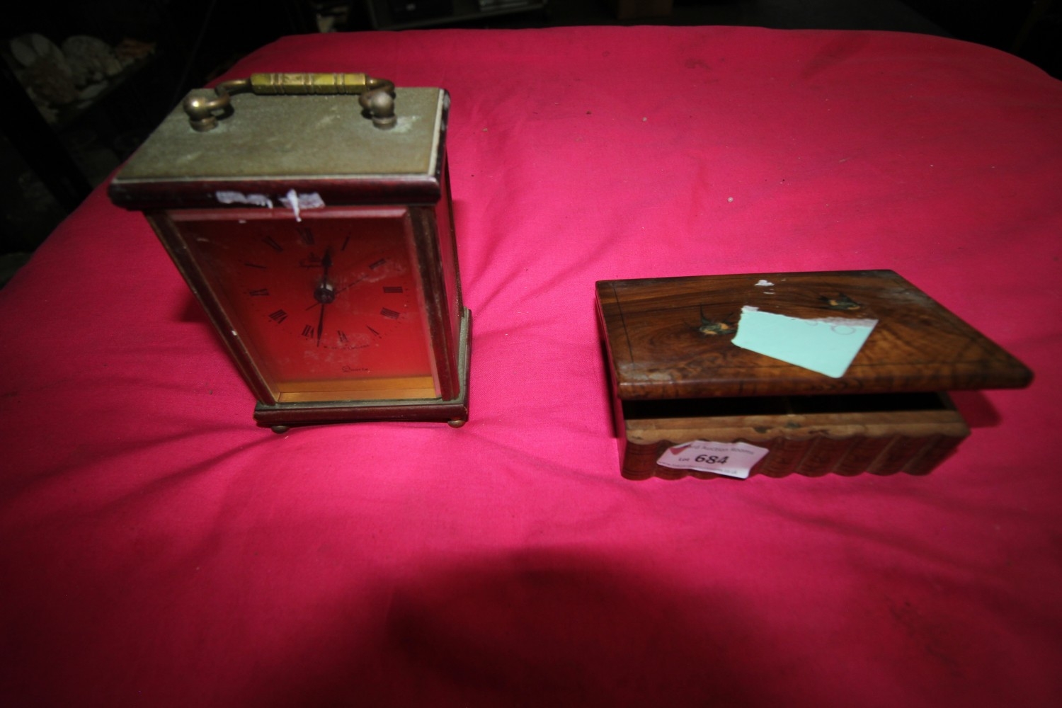 Lot 684: vintage brass carriage clock with stand