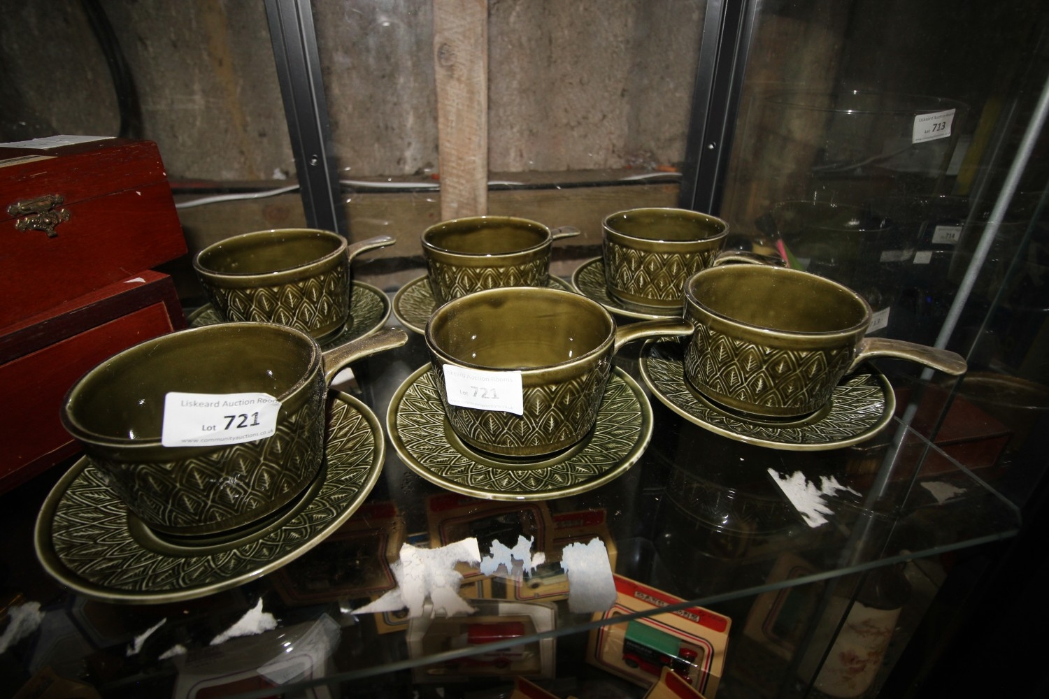 Vintage Tams set of 6 green soup bowls with handles and saucers in lovely condition.