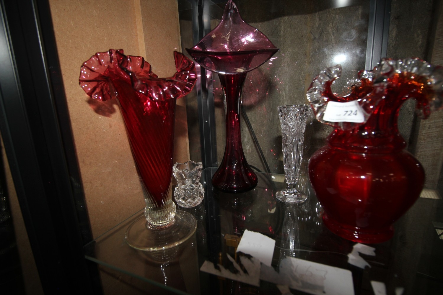 Lot 724: A cranberry Jack in the Pulpit vase and...