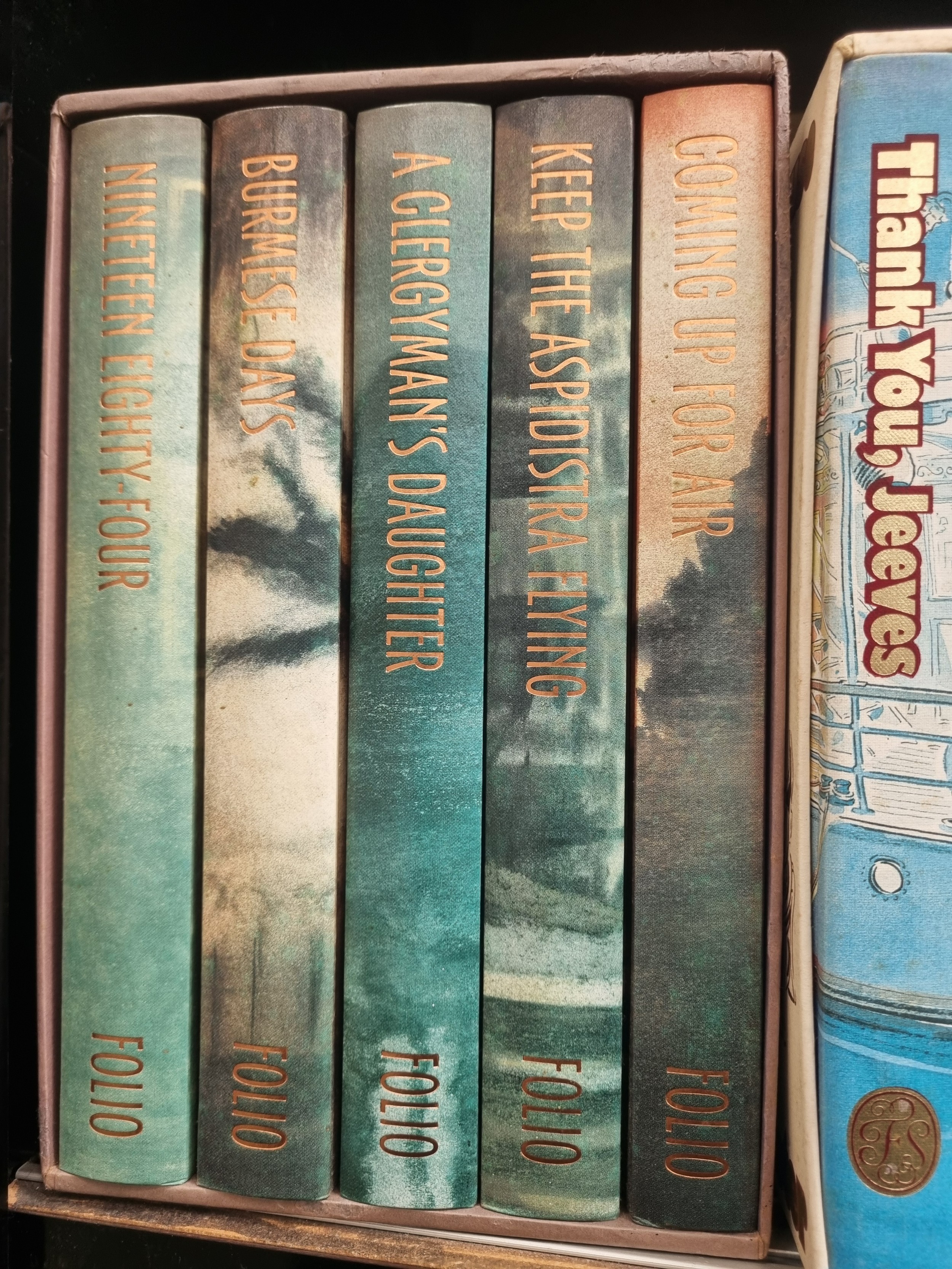Four sets of Folio Society hardbacks – Daphne Du Maurier, Evelyn Waugh, P.G. Wodehouse – Jeeves and Wooster and George Orwell