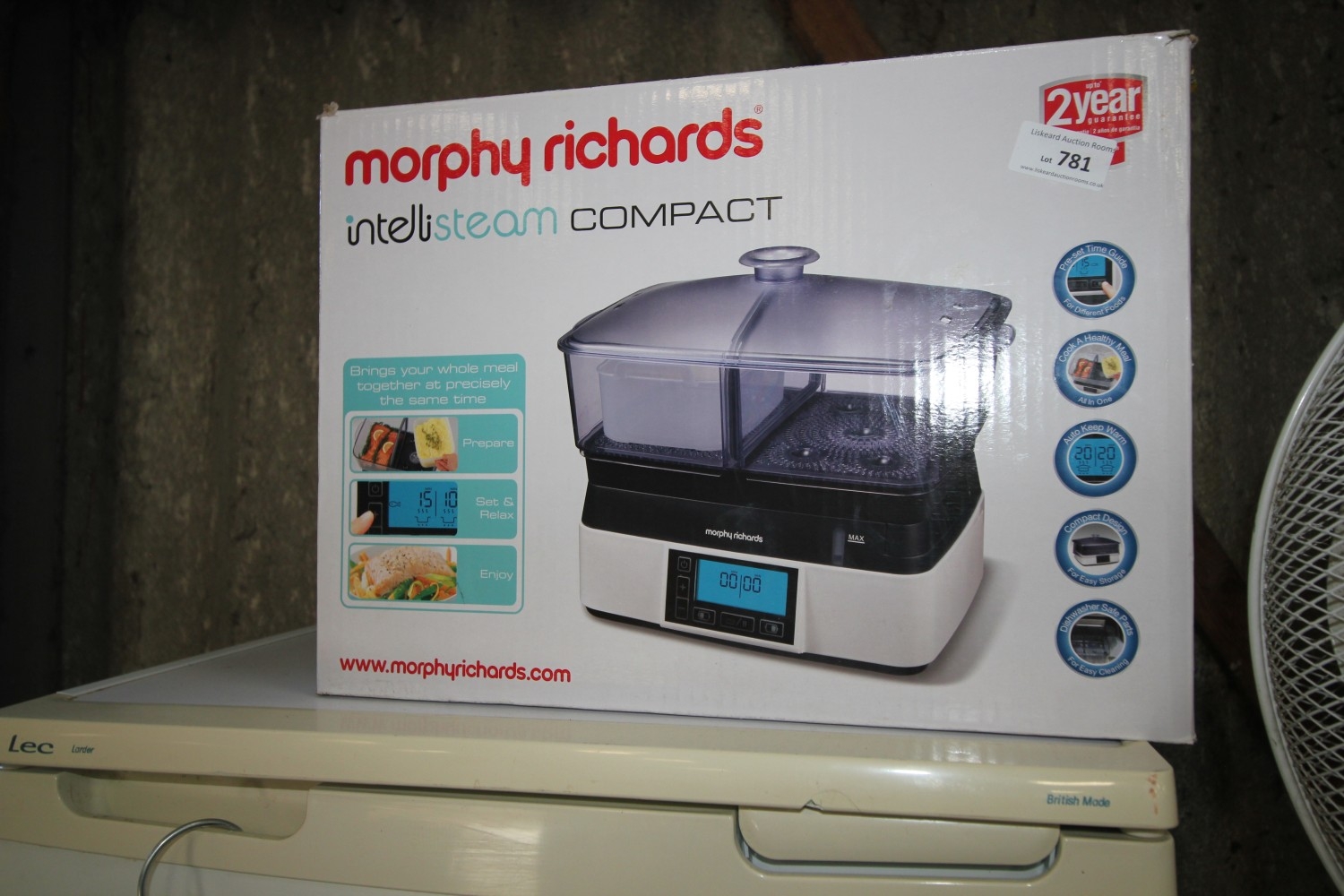 Lot 781: Boxed Morphy Richards Intellisteam compact digital steamer in...