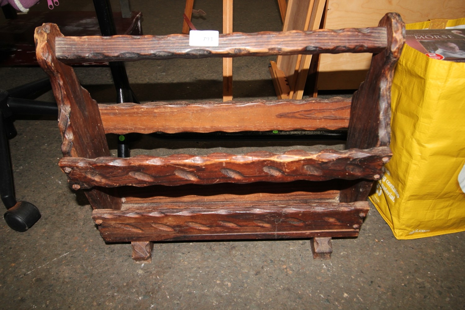 Lot 793: Vintage Bavarian style carved and knurled magazine rack