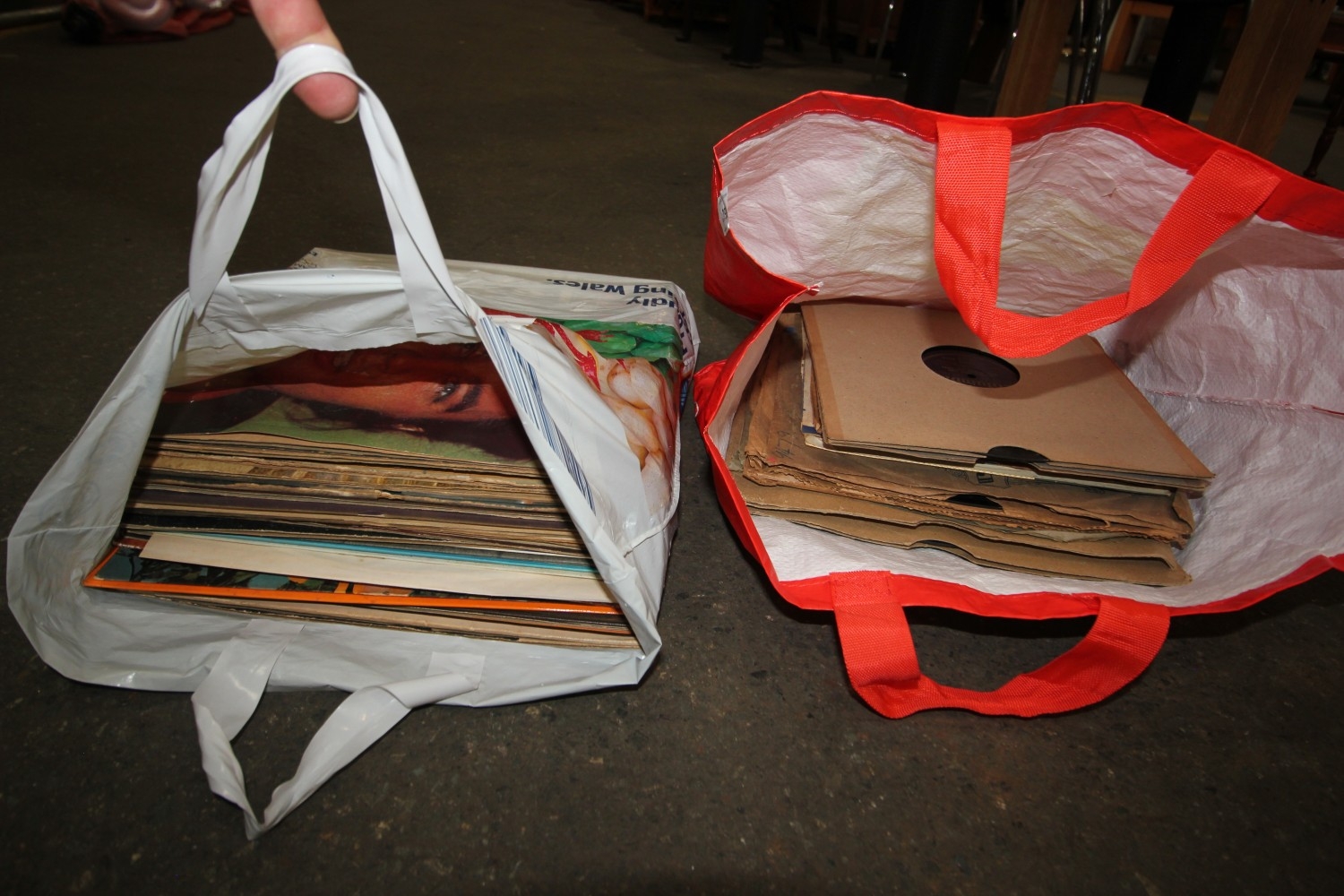 Two bags containing vintage LPs and Gramophone records
