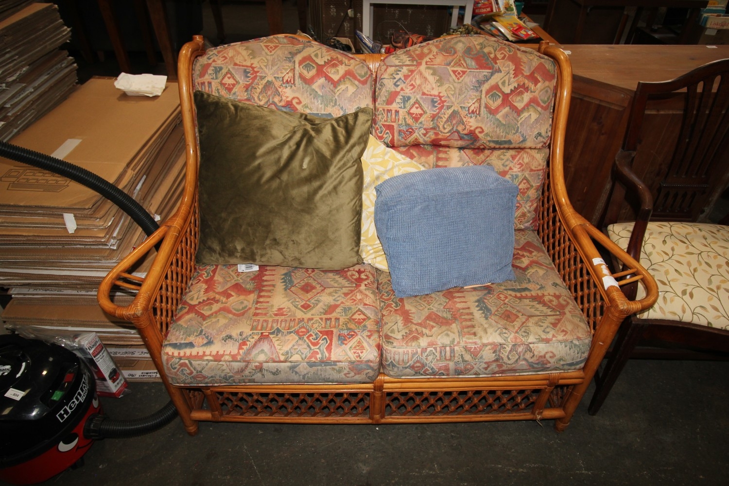 Bentwood bamboo and wicker two seat conservatory sofa in very nice condition with cushions