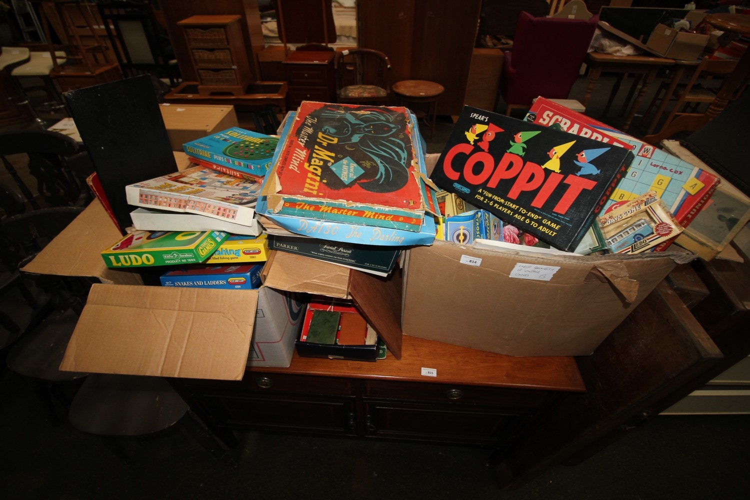 Very large quantity of vintage games inc. The Master Mind, Trivial Pusuit, Coppit, scrabble, vintage dominos and decks of cards, scrabble junior, boxed die-cast cars and much more