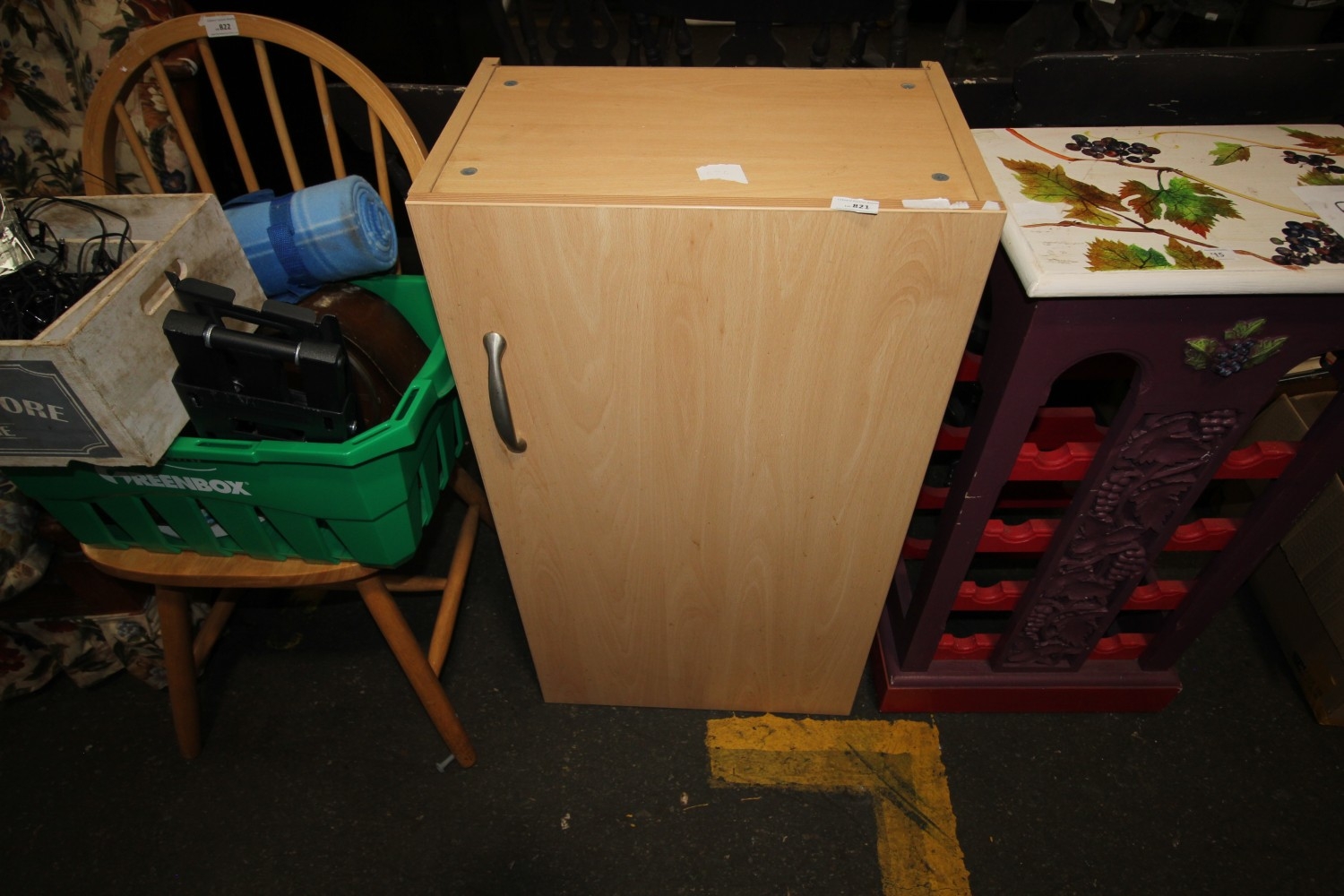 Lot 821: A LARGE BEECH COLOURED WALL CABINET MEASURING 90CM...