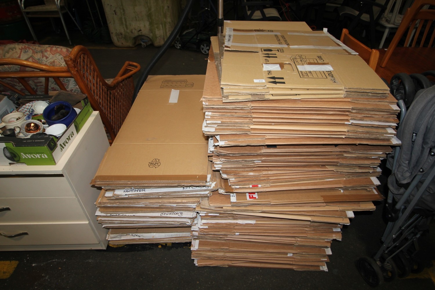 Lot 832: Very large quantity of carboard packing boxes