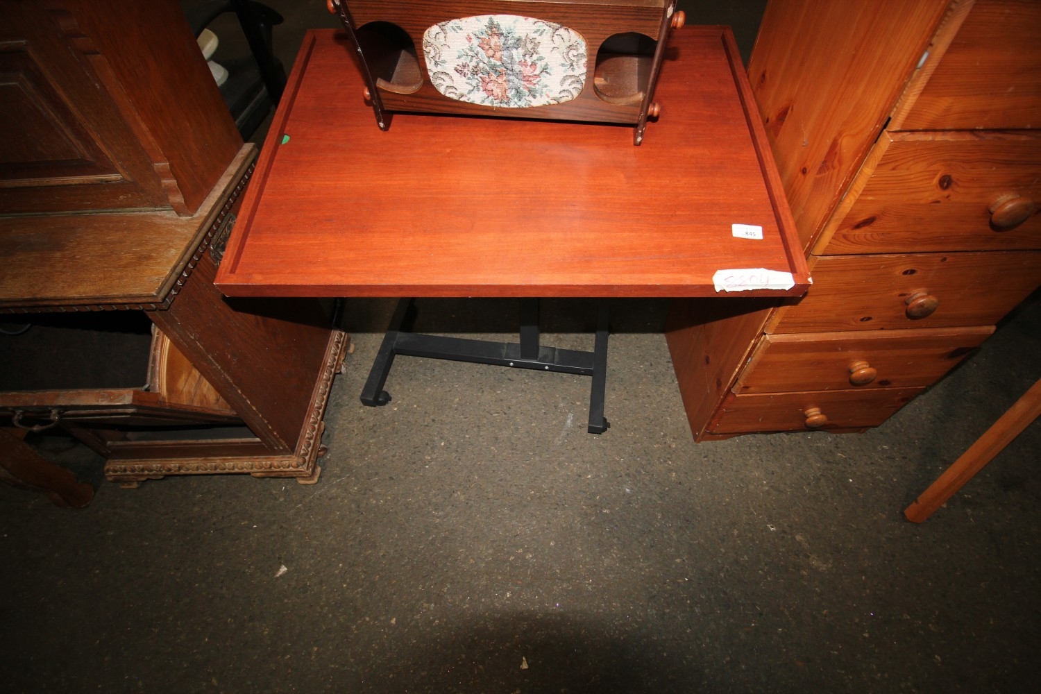 Lot 845: Green baize topped jigsaw / games table with...