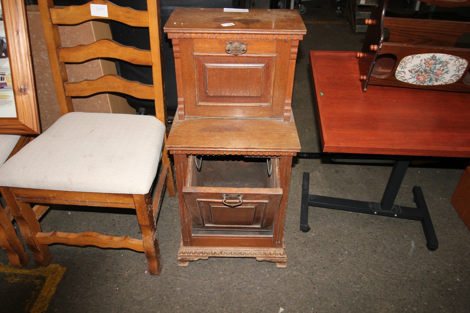 Lot 846: Antique carved oak coal purdonium with two shelf...