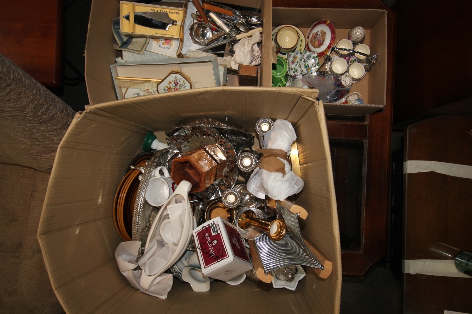 3 boxes of plated ware and vintage items