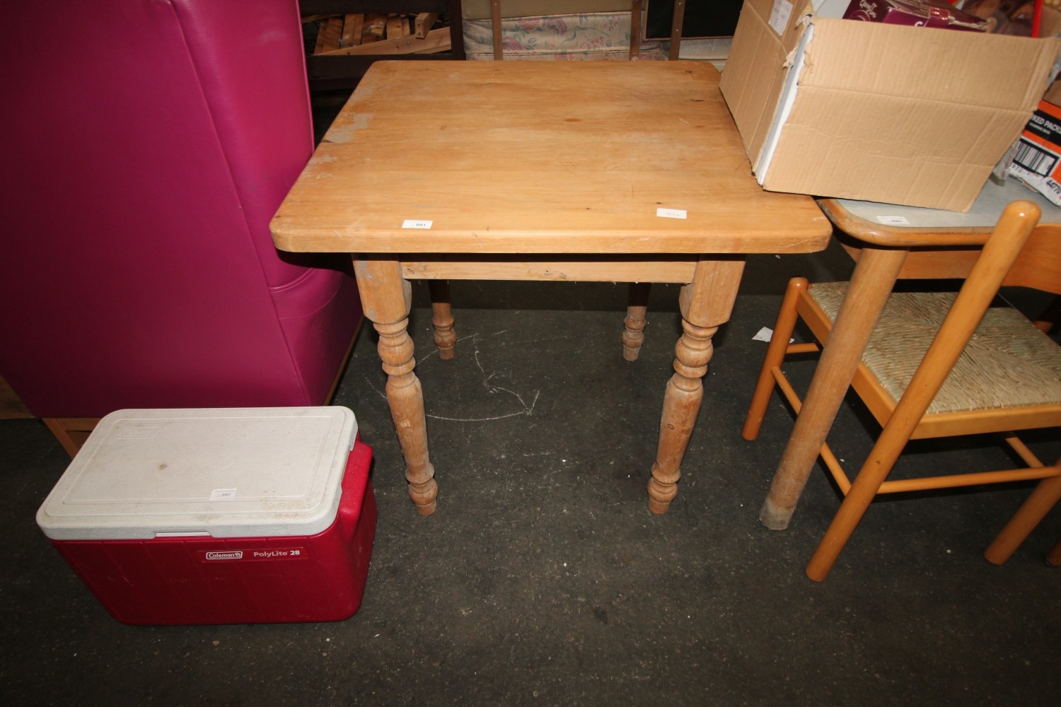 Lot 881: pine square table 76cm x 79cm x 77cm