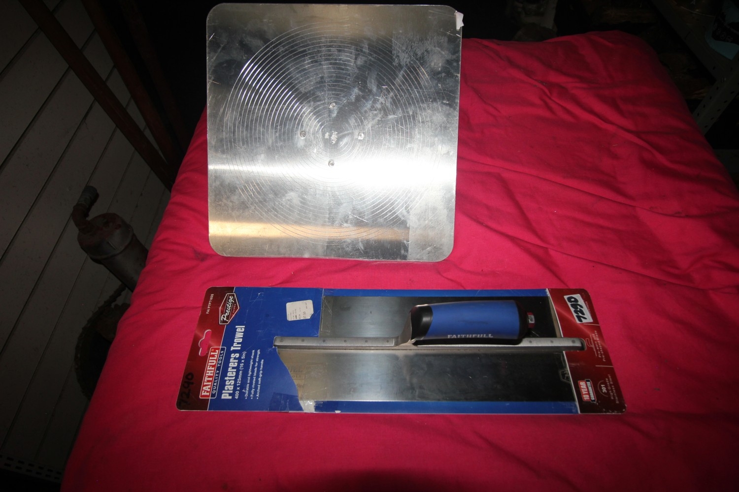 Brand new Faithfull Prestige range pre-shaped plasterer’s trowel and lightweight aluminium hawk