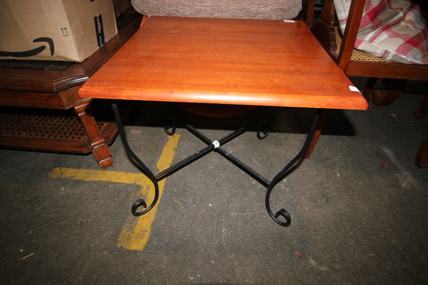 a cute hertz wood teak and wrought iron end table or coffee table HW 6/1