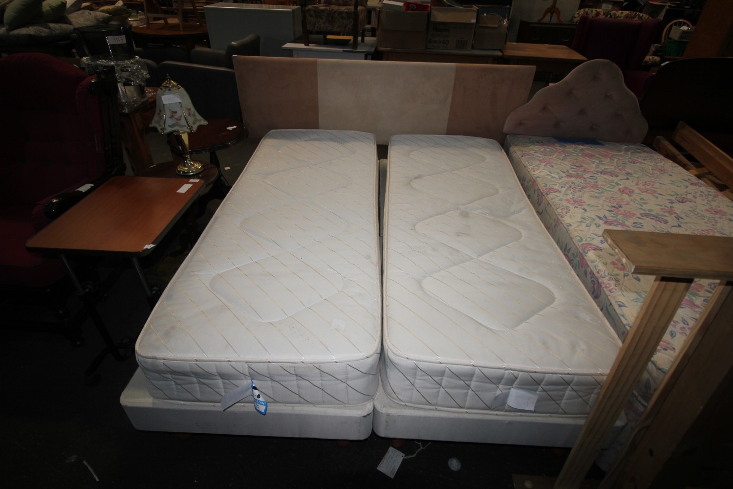 Lot 943: Kingsize bed with mattresses and suedette headboard