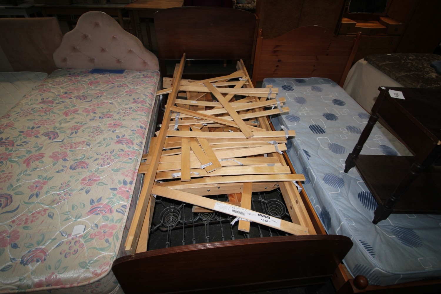 Lot 945: Antique metal-framed single bed with very sturdy sprung...