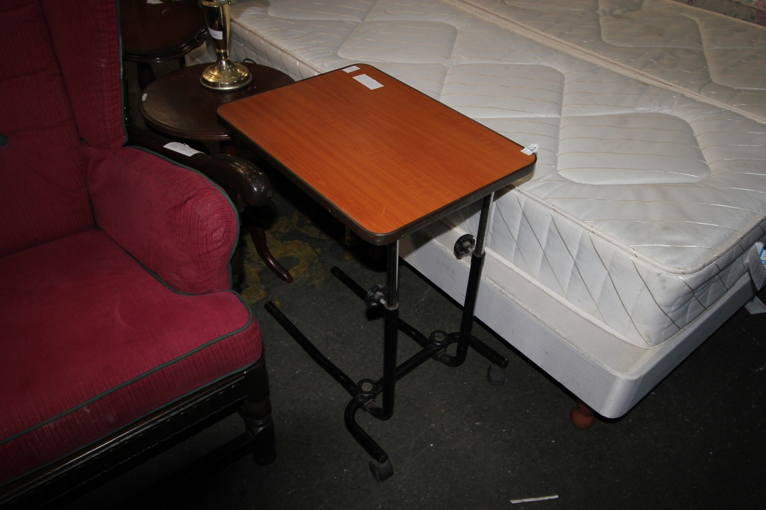 Lot 953: adjustable over-bed table on wheels