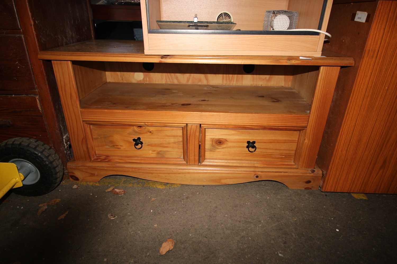 Lot 974: Solid pine two drawer entertainment / tv unit...