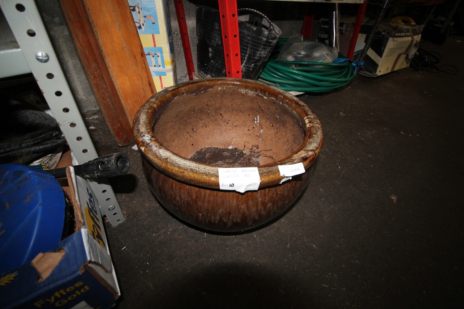 A large glazed terracotta pot measuring 39cm in diameter and 23cm in height approx