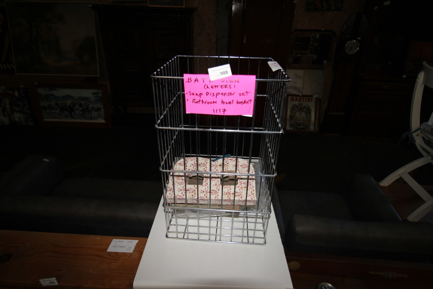 Lot 988: Bathroom set inc Soap dispenser, towel basket and...