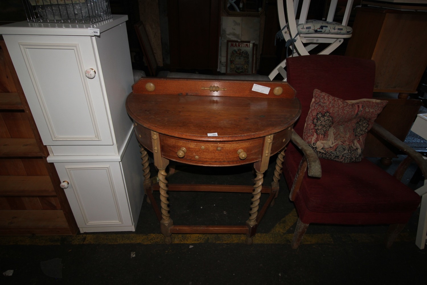 Lot 989: Vintage Edwardian oak demilune console table with barley...