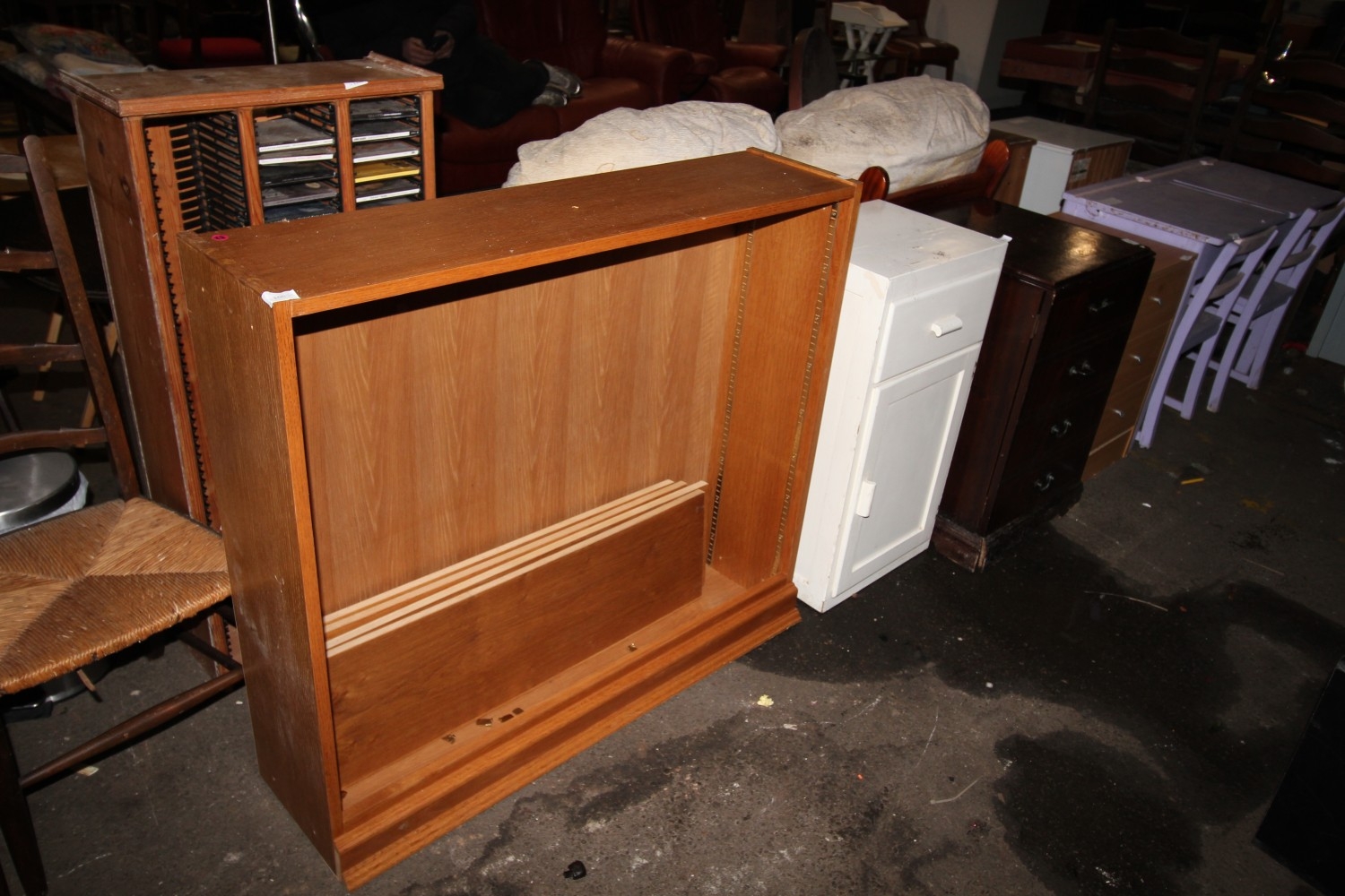 Lot 1005: 34" tall wooden shelving unit