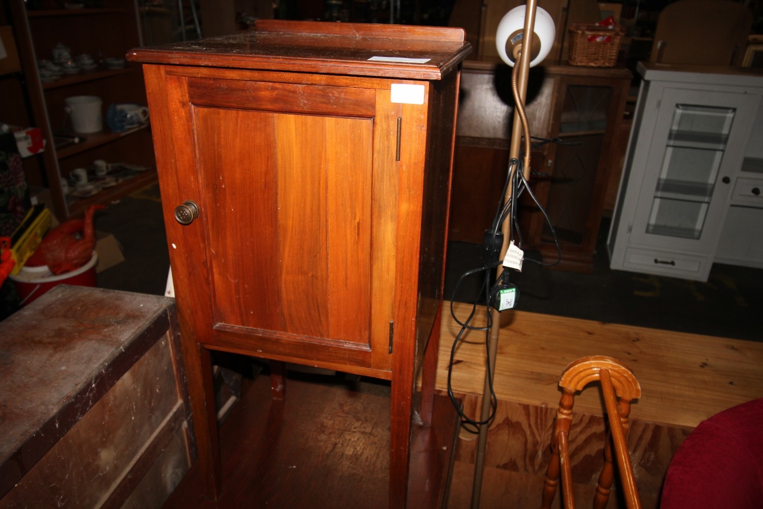 Vintage walnut pot cupboard and oak dropleaf single drawer occasional table
