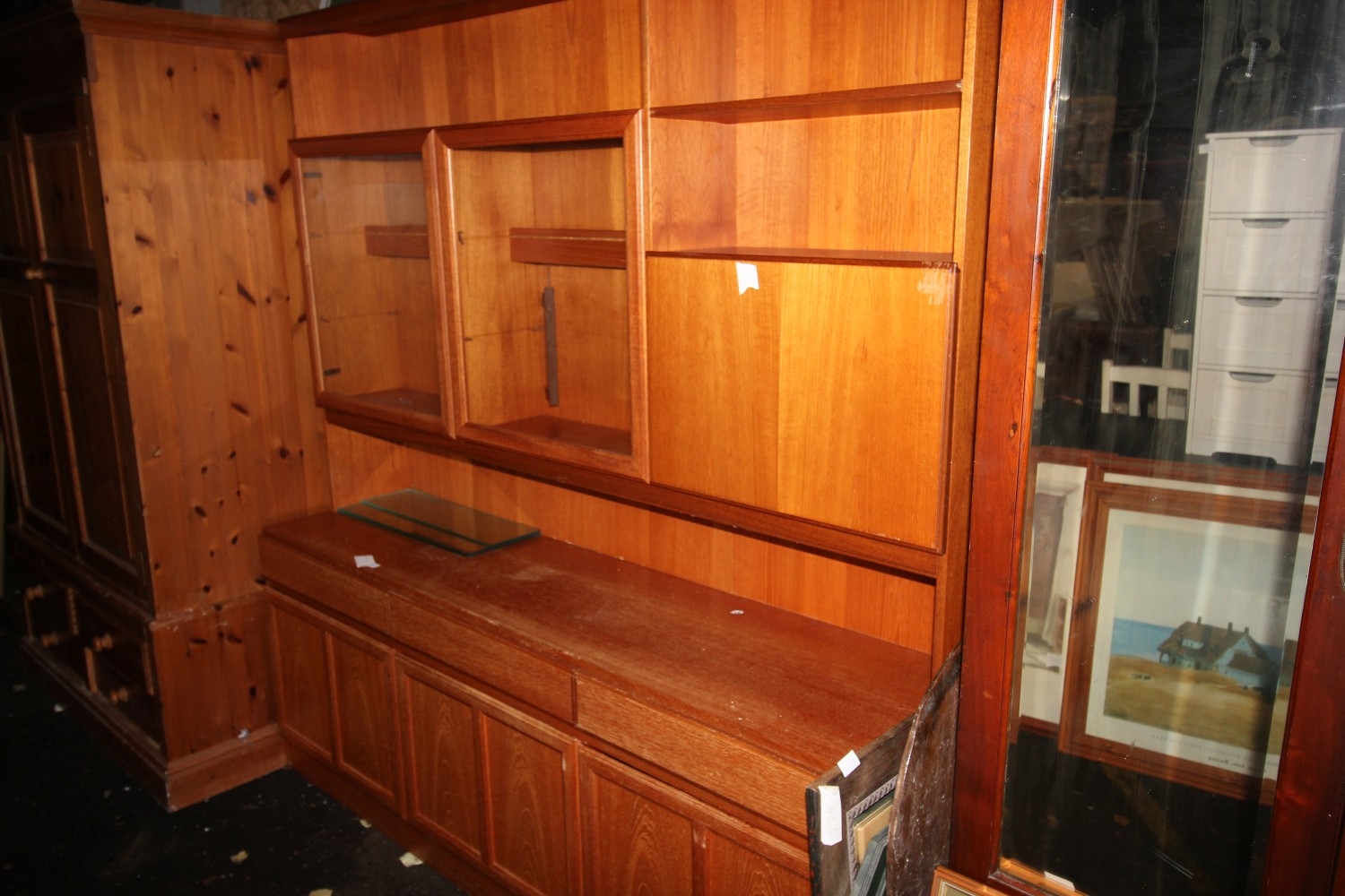 Lot 1028: Large vintage Mcintosh teak display cabinet with shelves,...