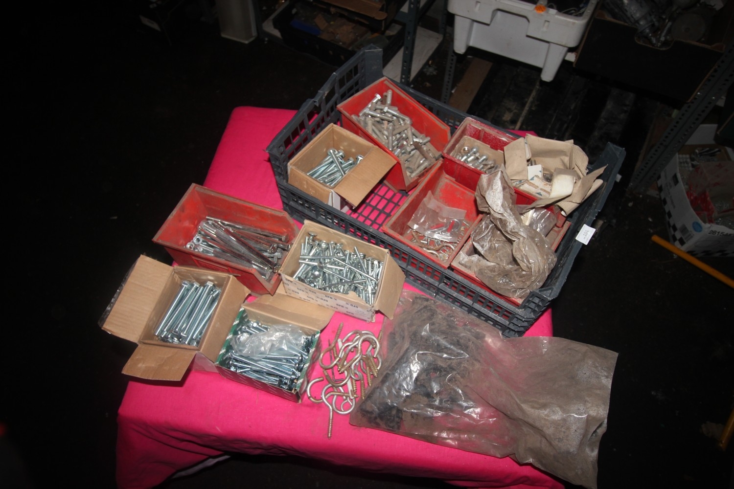 Lot 104: crate full of bolts and fixings