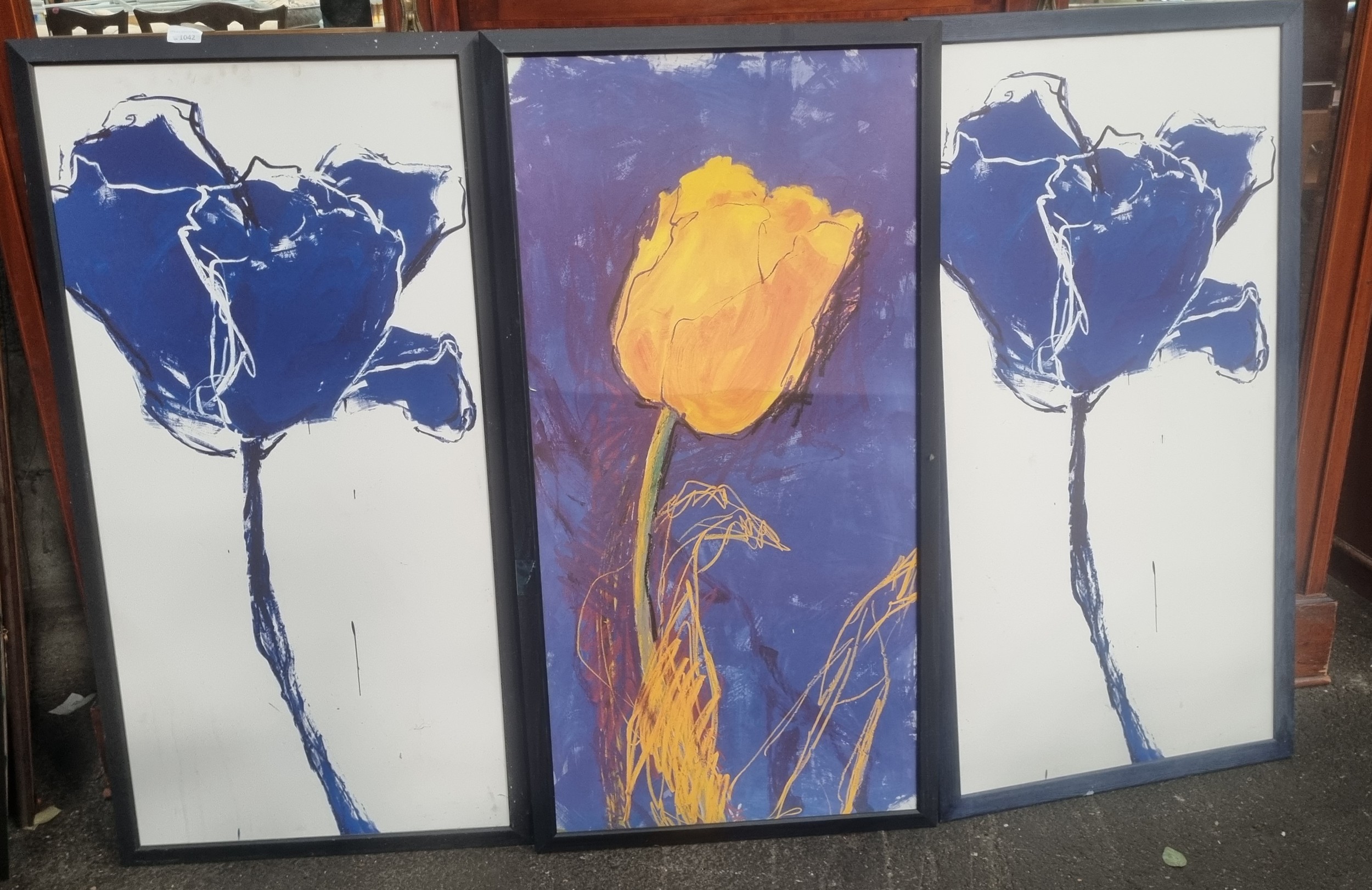Lot 1042: Large triple abstract wall montage of Blue Rose...