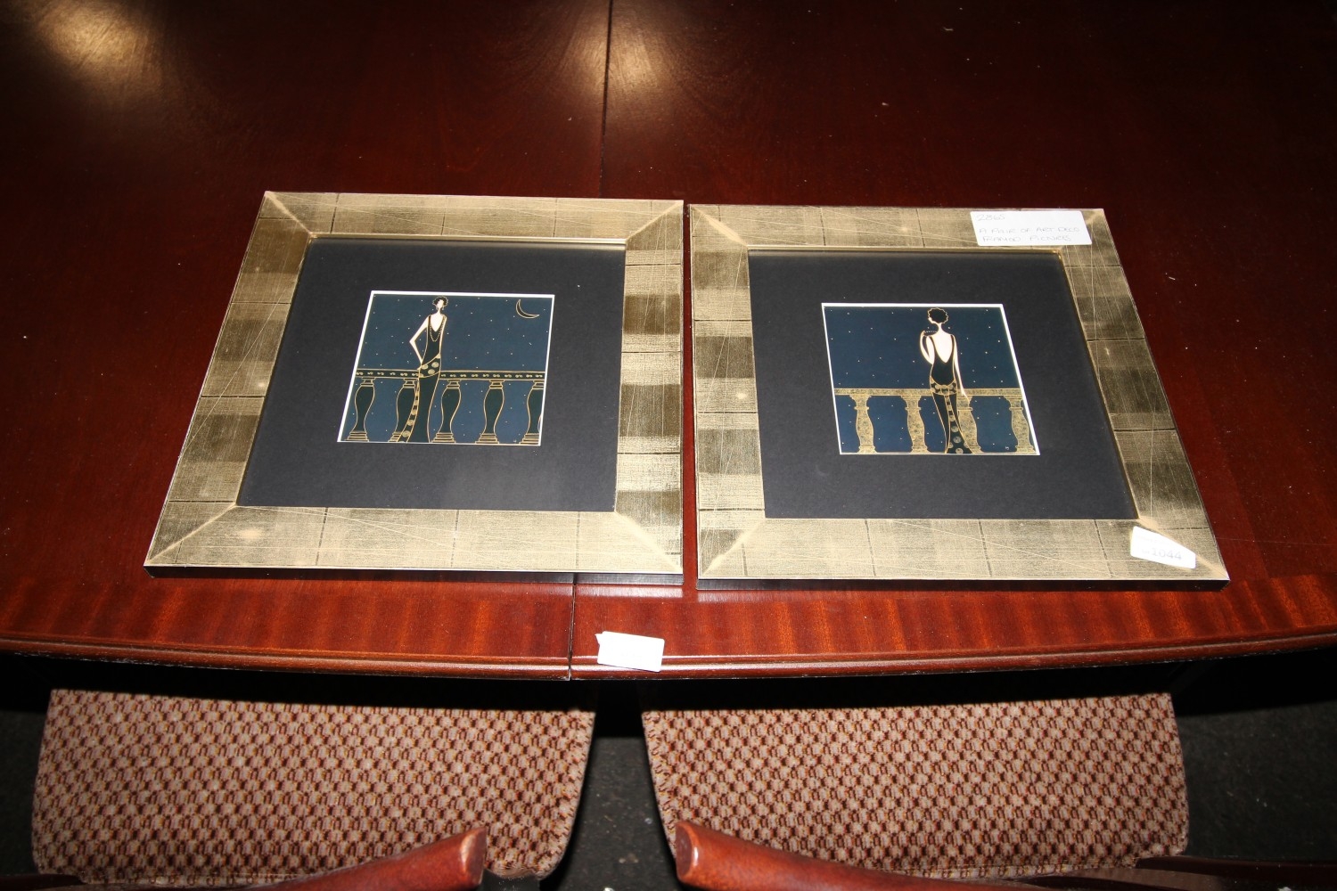 Lot 1044: Pair of Art Deco styled pictures in gold...