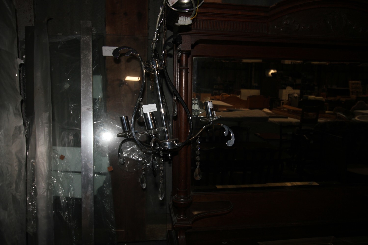 Lot 1046: Attractive chrome and crystal pendulum chandelier light fitting