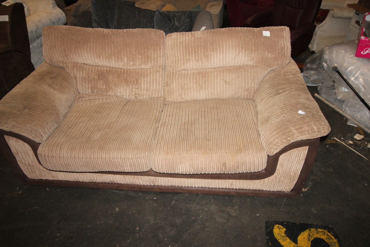 Lot 1053: Large and comfortable fawn-coloured jumbo cord sofa bed