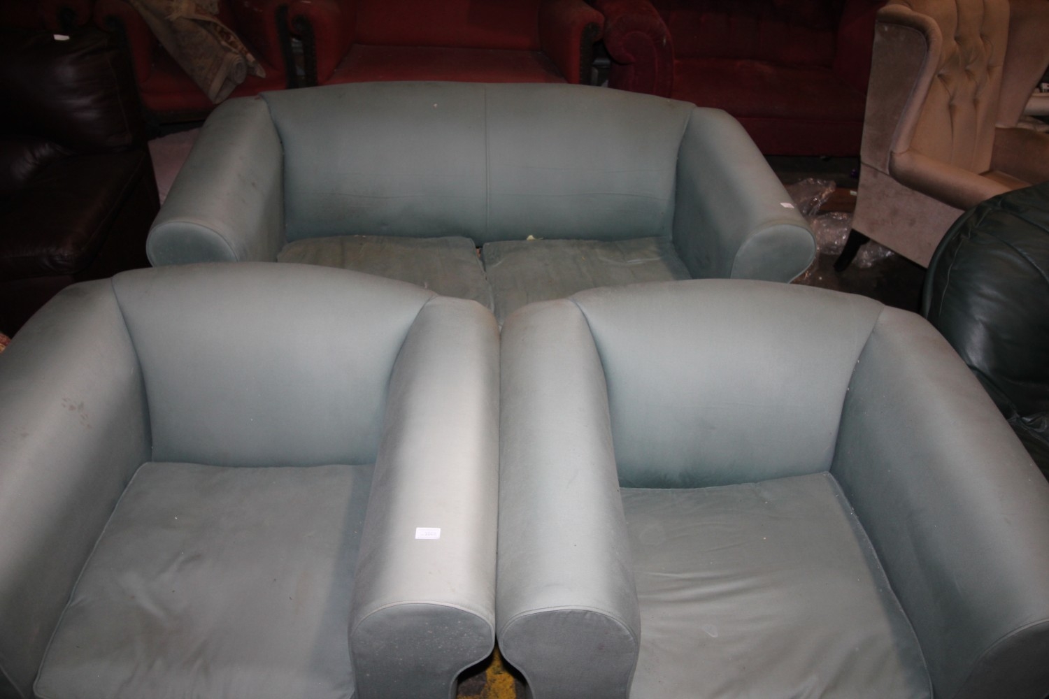Lot 1069: Seafoam green three piece suite
