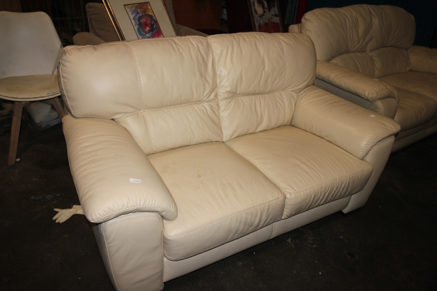 Lot 1072: Ivory coloured leather two seater sofa in very...