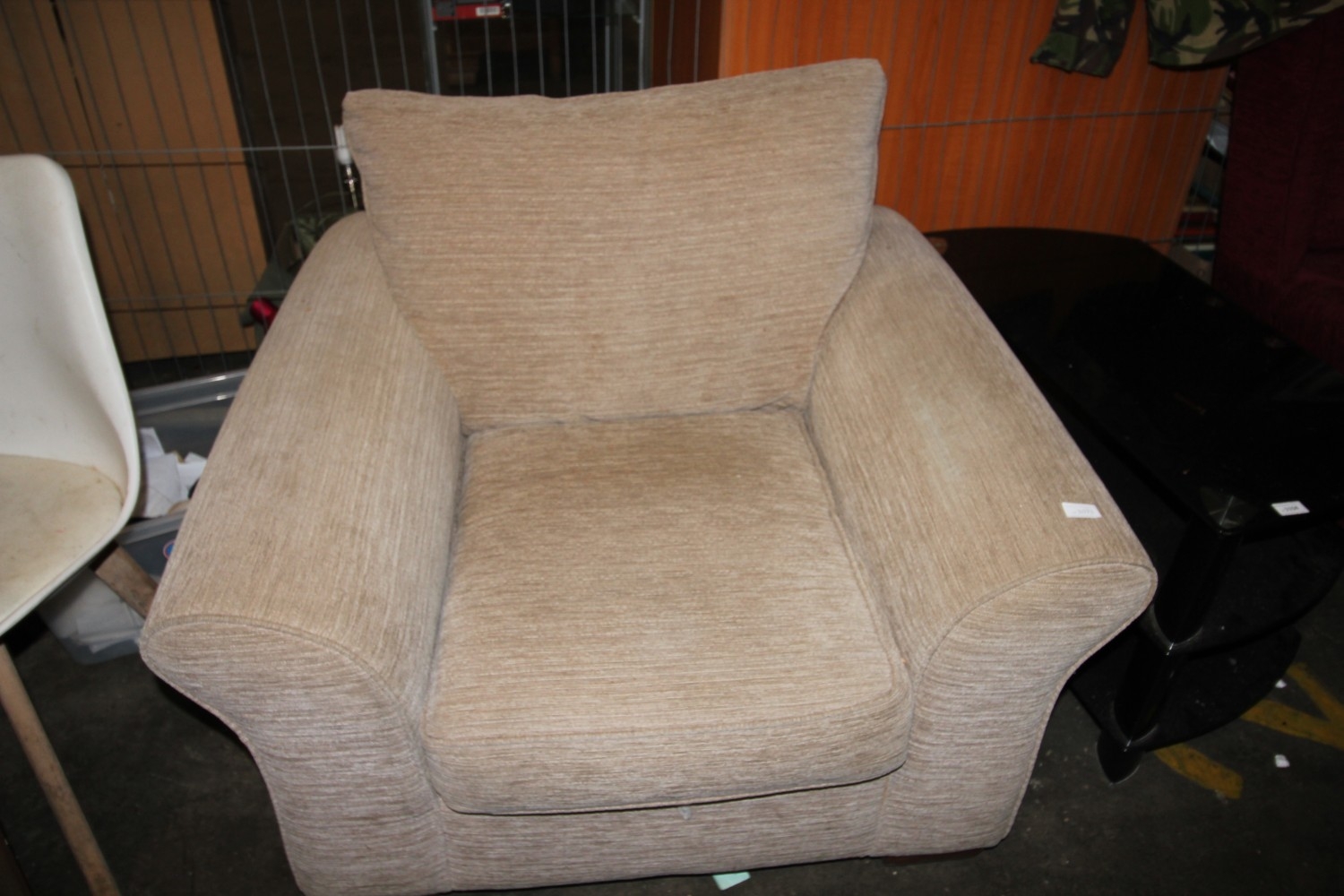 Lot 1073: Comfortable biscuit coloured armchair